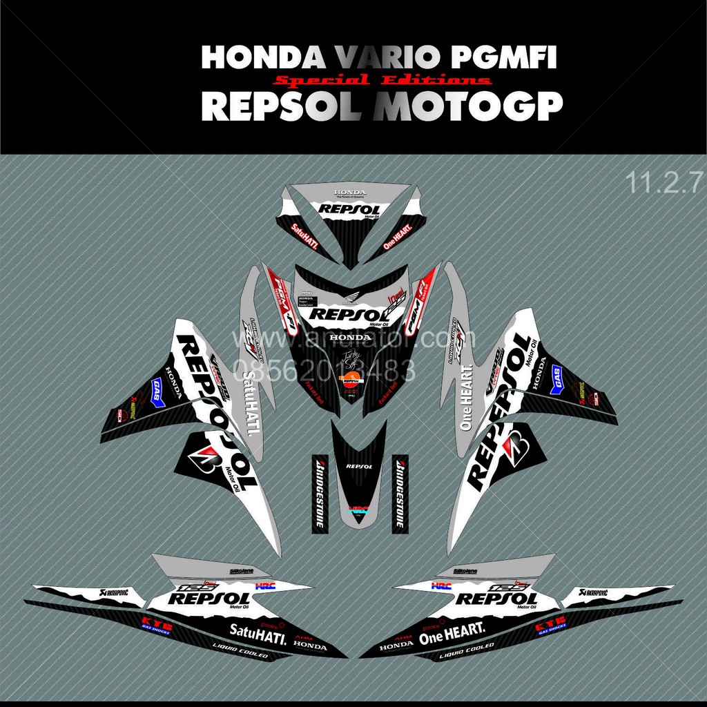 Sticker Striping Motor Stiker Honda Vario Pgmfi Repsol Hitam Spec